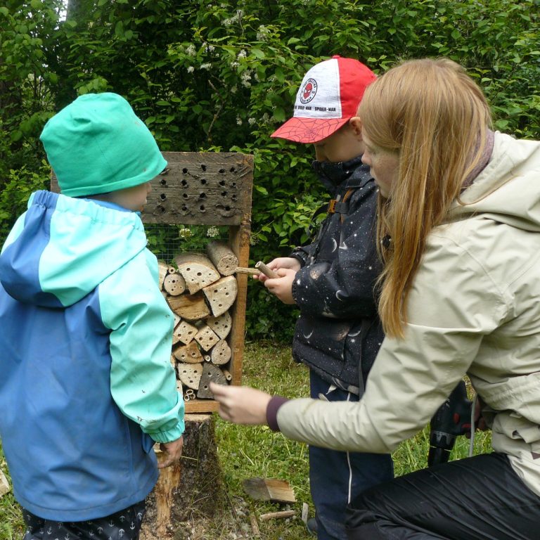 Mit Wald und Wiese vor der Tür lernen sie von Beginn an die Natur zu lieben und zu schätzen und können sich spielerisch und sicher in ihr bewegen. Täglich erforschen und entdecken die Kinder das Umfeld und lernen so die heimischen Pflanzen und Tiere mit allen Sinnen kennen.