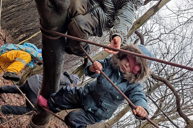 Wir bewegen uns täglich und bei jedem Wetter mehrere Stunden mit den Kindern in der Natur. Das stärkt ihr Immunsystem, fördert den Bewegungsapparat sowie die Entwicklung des eigenständigen und sozialen Handelns.